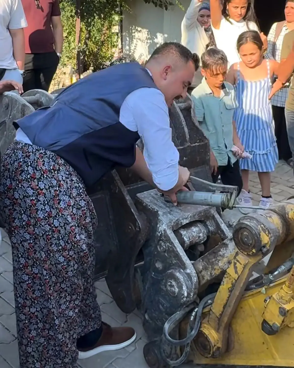 Denizli’nin Güney ilçesinde düzenlenen düğün merasimi renkli anlara sahne oldu. Gelin alma merasiminin akabinde damadın arkadaşları, damada iş makinasını yağlatarak eğlendiler.