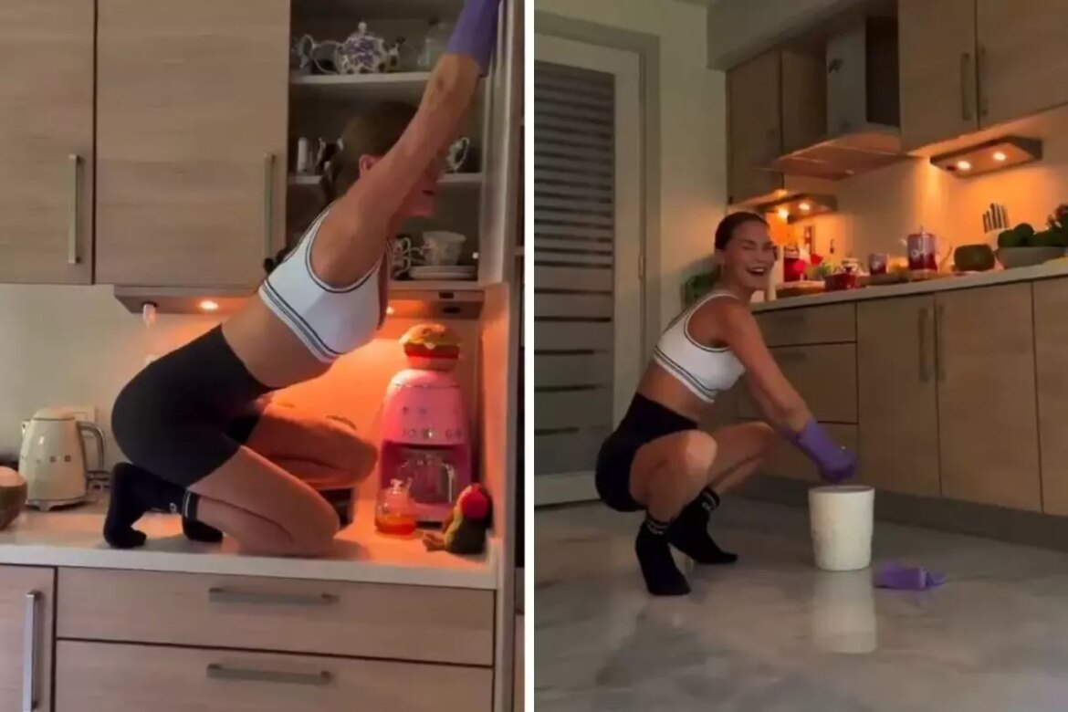 Pilates yaparken bir yandan da paklık yapan ünlü model , o anları “Hem temizle hem pilates yap” notuyla paylaştı. İmajlar kısa müddette gündem oldu.