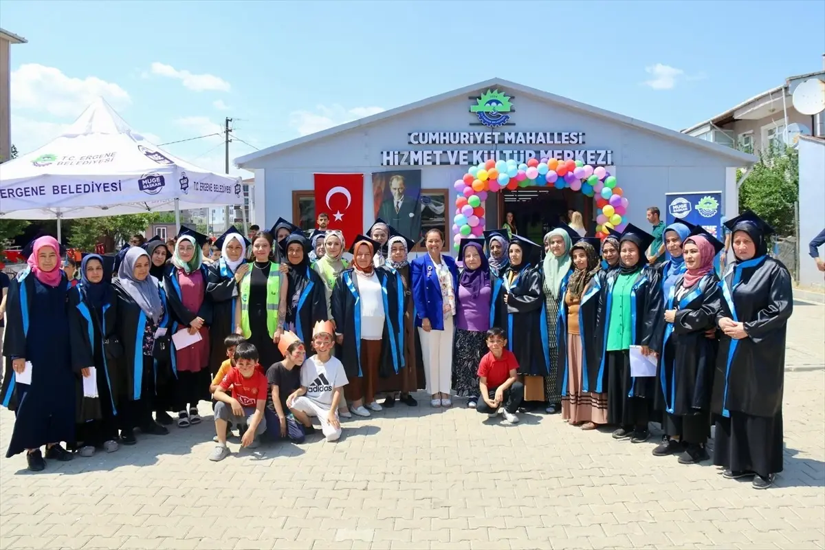 Ergene Belediyesince düzenlenen okuma yazma kursunu tamamlayan bayanlar için merasim düzenlendi.