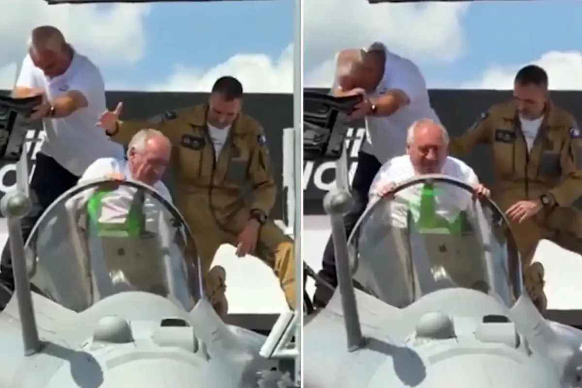 74 yaşındaki Fransız siyasetçinin ceketini çıkararak pilot kabinine girdiği ve kabinden çıkarken zorluk yaşadığı anlar, basına yansıdı.