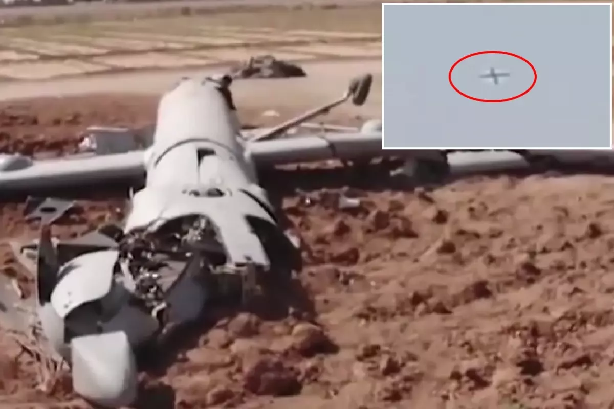 İran devlet televizyonu, düşürülen İsrail üretimi Hermes 900 tipi olduğunu açıklanan dronun manzaralarını yayınladı.