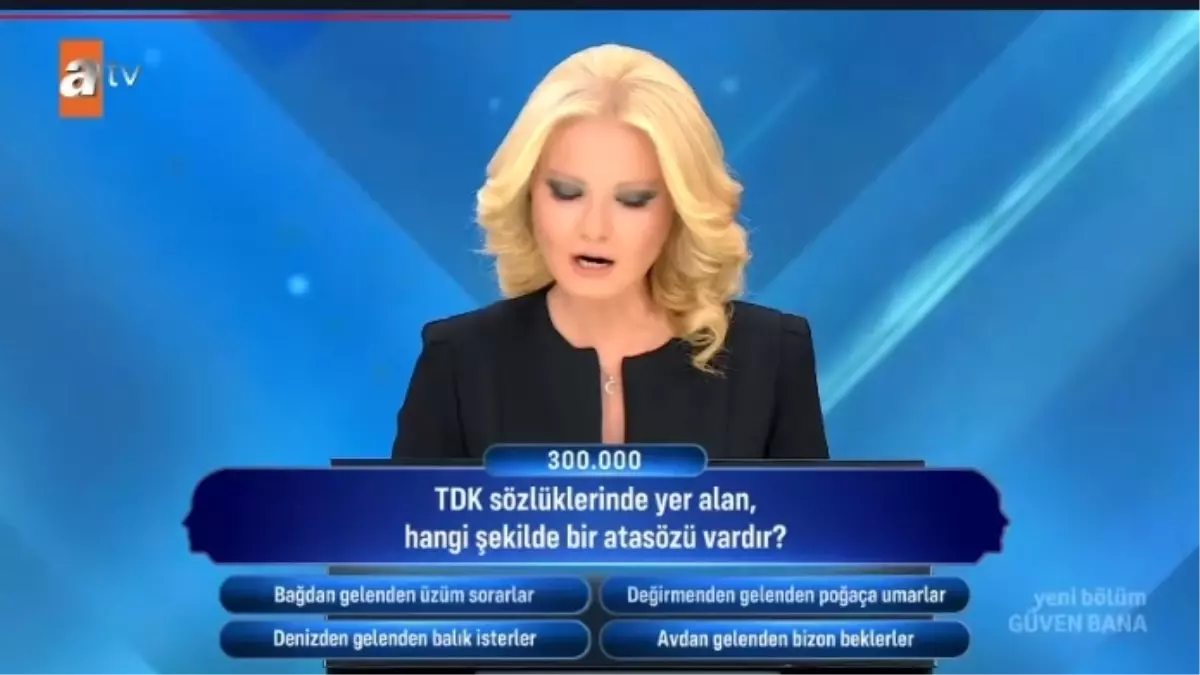 Yeni kısımlarda yer alan sorular, her yaştan izleyicinin ilgisini çekiyor. Yarışmacının vereceği yanıtı dikkatle takip eden izleyiciler, birebir vakitte ekran başında gerçek yanıtı varsayım etmek için kendi bilgilerini test ediyor. Programın bu istikameti, eğlenerek öğrenme kavramını izleyiciyle buluşturuyor. İzleyiciler, yarışmacının yerine kendilerini koyarak bilgi dolu bir seyahate çıkıyor. Pekala,TDK sözlüklerinde yer alan hangi biçimde bir atasözü vardır?